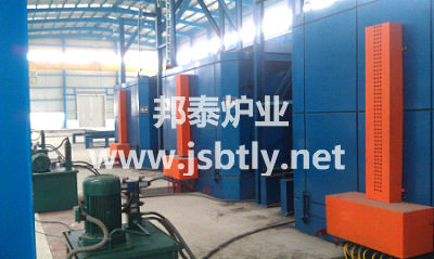 本爐為本公司首創(chuàng),參照美國技術研制出的國內(nèi)第一臺快速淬火爐機組,經(jīng)用戶一年多的使用取得了較高的經(jīng)濟效益,并增加了多條生產(chǎn)線,目前已有多家客戶改用了本機組,目前運行非常好。主要應用于各類金屬工件和不銹鋼固溶處理進行快速淬火之用,配套裝卸小車可在出爐時快速進入爐體將工件鏟出并快速入水進行淬火。結構簡介:本爐主要由爐體、爐體升降系統(tǒng)、爐臺、料盤、移動鏟車等部分組成。本爐為罩式爐爐型,可根據(jù)不同用戶的需求設計生產(chǎn)成方型、矩形、圓型等不不同的爐型,可一爐一車,或多爐一車形成整條生產(chǎn)線。同時也可設計成箱式爐爐型。注:可根據(jù)不同用戶的生產(chǎn)需求另行設計制造。