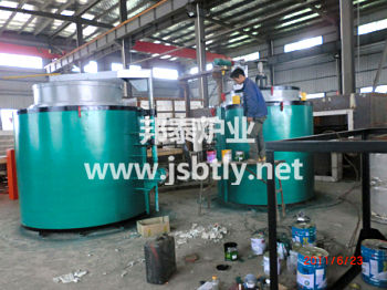 爐蓋:本爐有兩只爐蓋,爐蓋鋼結(jié)構(gòu)由型鋼及鋼板焊接成型,纖維毯模塊做保溫層,爐蓋的啟閉采用手動起吊方式,采用車間原有行車對爐蓋進(jìn)行起吊,有爐蓋的兩側(cè)安裝有供爐蓋歸位的導(dǎo)向裝置。 爐膽:本爐有兩只爐膽,爐膽采用10mmA3鋼板經(jīng)過滲鋁后焊接而成,兩只爐膽交替使用,既節(jié)約了能源又增加了生產(chǎn)效率。